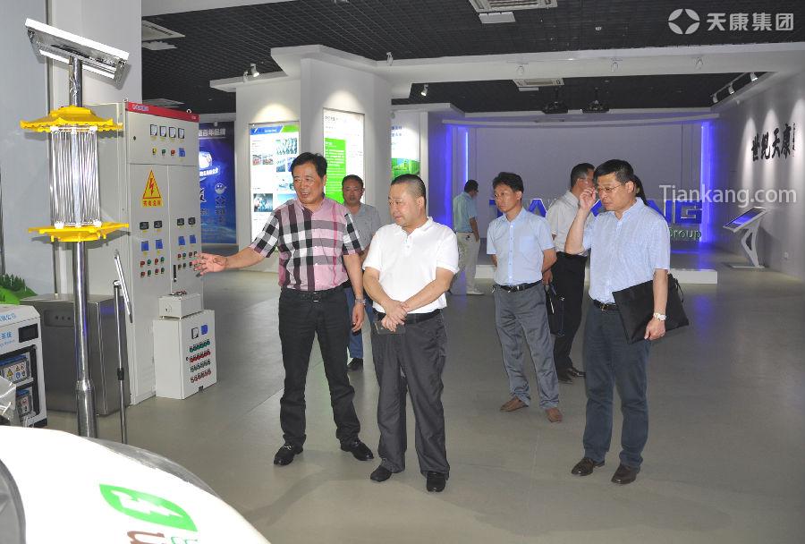 在集團展示廳介紹鋰電池、新能源殺蟲燈、植保無人機及純電動車等產(chǎn)品的相關(guān)情況。