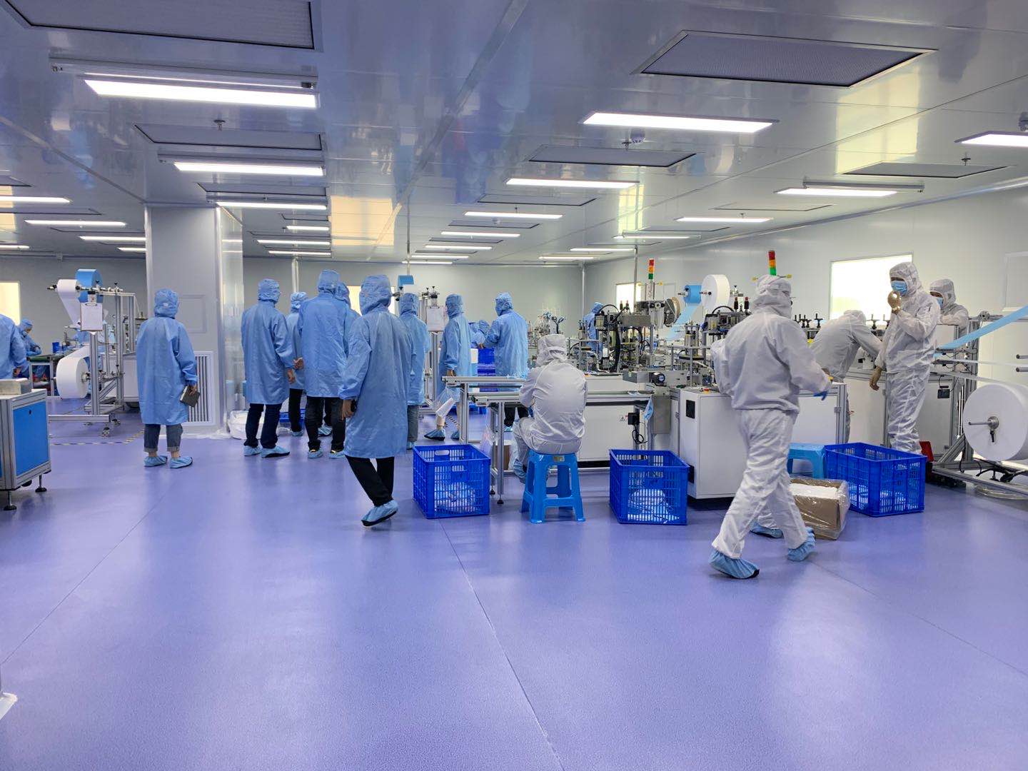 隨后,董事長柳夕良一行參觀了安徽電氣口罩生產(chǎn)線,安徽電氣總裁對生產(chǎn)設(shè)備、功能定位做了詳細講解。
