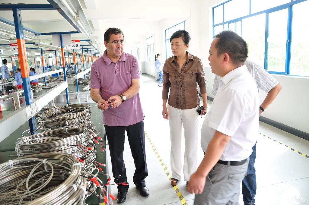 安徽電氣集團總經(jīng)理趙建軍陪同諾物先生參觀考察了公司研發(fā)室、質檢室、生產(chǎn)車間等,并在集團會議室舉行了友好會談。